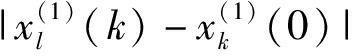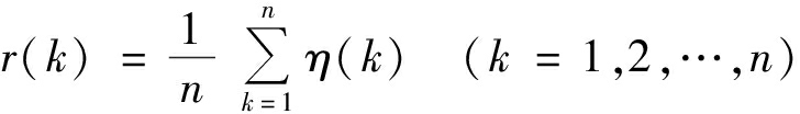 (4)计算各个突出影响因素的关联度。比较数列与参考数列在各个时刻的关联程度值为关联系数,计算出每一个突出影响因素和突出强度的关联系数后,采用式(5)计算结果作为比较数列与参考数列间关联程度的大小,关联系数的平均值称为关联度,反映数列之间的紧密程度。关联度r(k)的表达式为