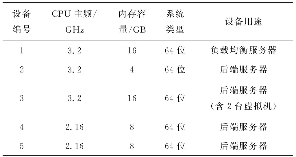 设备编号CPU主频/GHz内存容量/GB系统类型设备用途13.21664位负载均衡服务器23.2464位后端服务器33.21664位后端服务器(含2台虚拟机)42.16864位后端服务器52.16864位后端服务器