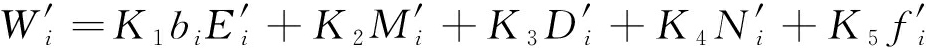 Wi=K1biEi+K2Mi+K3Di+K4Ni+K5fi