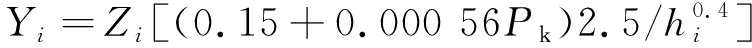 Zi=Pk[ktkgky(0.25+0.018tihi)+0.1S]