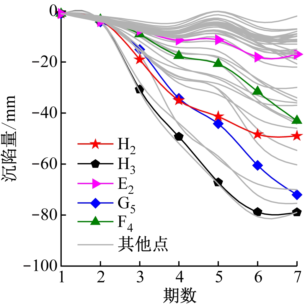 图5 观测点沉陷量曲线
