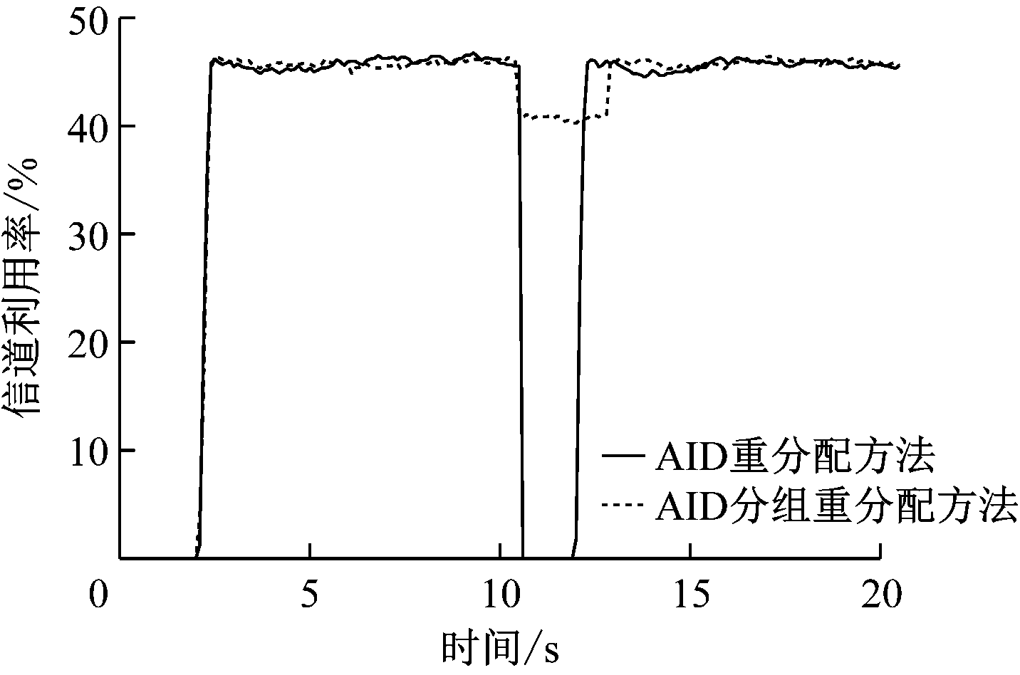 在AID分组重分配方法中,每个信标间隔内仅有1个RAW组持续时间用于节点重关联,其他RAW组在重分组过程中仍可传输数据,使得RAW重分组过程对网络性能影响较小。与AID重分配方法中所有节点在信标间隔内竞争关联AP相比,AID分组重分配方法每次仅重新关联一部分节点