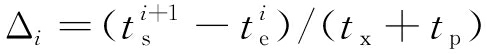 (1) 在节点关联AP阶段,AP通过帧交互获得并记录节点S1,S2,…,SN的传输周期及初始发包时间。设T为各节点传输周期的最小公倍数,T内所有传感节点有δ个数据包待传输,由AP记录的信息可知数据包i的传输开始时刻