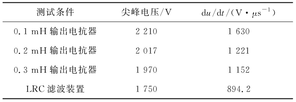 表1 采用不同输出电抗器与LRC滤波装置时尖峰电压和du/dt仿真数据