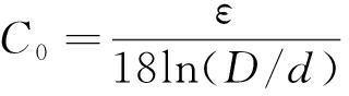 式中:μ0为真空磁导率;S为导体中心距;G为导体几何均距;ε为绝缘材料相对介电常数;D为电缆绝缘外径;d为电缆绝缘内径。
