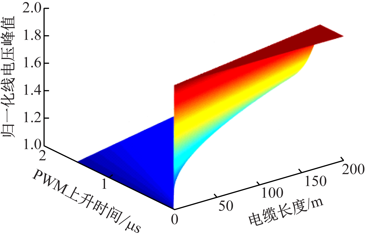 图4 PWM上升时间、电缆长度与归一化线电压峰值关系
