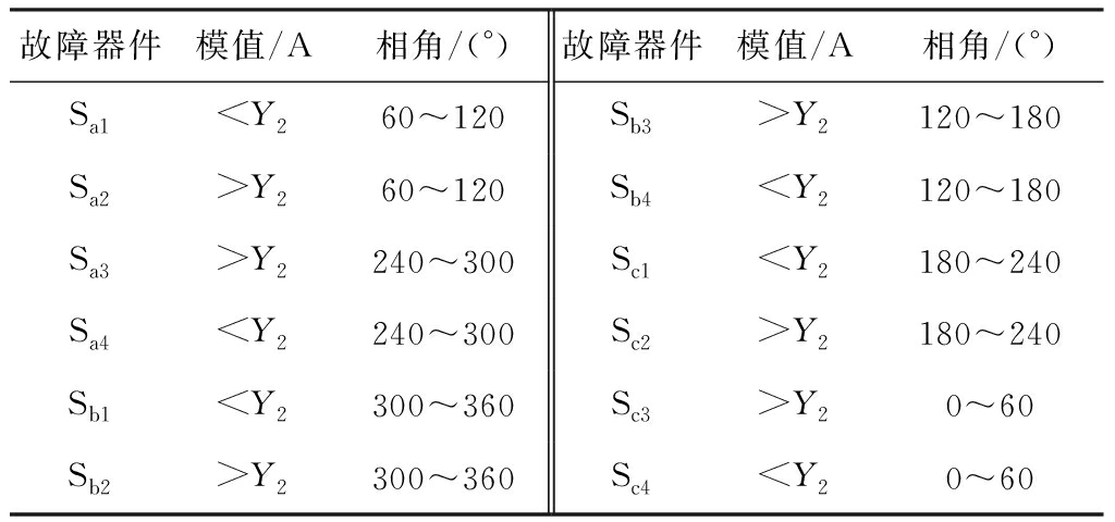 故障功率管与相角和模值的对应关系见表1。