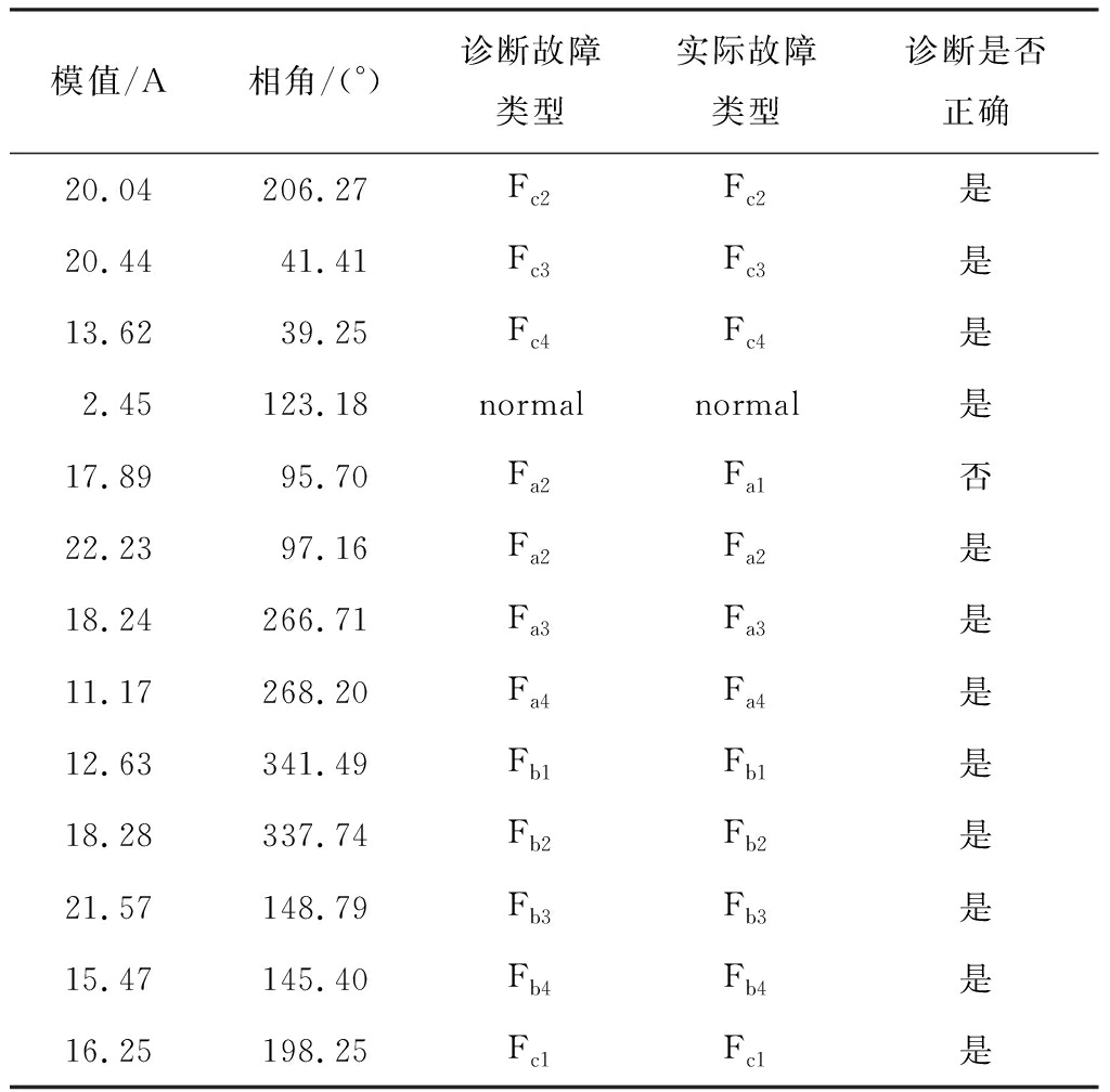 将正常状态列为一种特殊故障,用矢量索引表示故障类别,共有13种故障类别。输出矢量索引集记录为{normal,Fa1,Fa2,Fa3,Fa4,Fb1,Fb2,Fb3,Fb4,Fc1,Fc2,Fc3,Fc4}。其中“normal”表示正常状态,其余表示对应的IGBT单管开路故障。