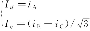通过Park变换将abc坐标系下的三相电流转换为dq坐标系下的相应分量[15]。三相电流iA,iB,iC的Park变换公式为