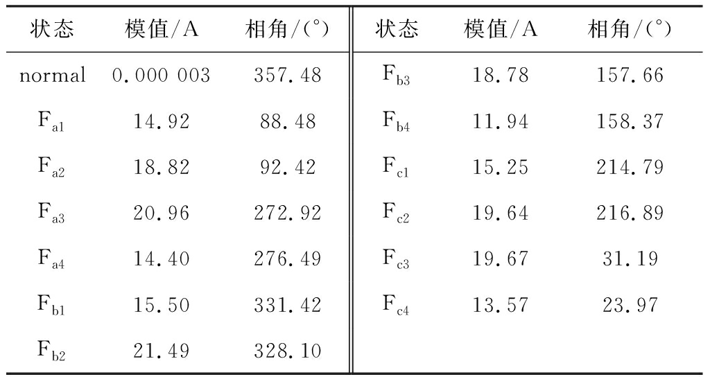 状态模值/A相角/(°)状态模值/A相角/(°)normal0.000 003357.48Fb318.78157.66Fa114.9288.48Fb411.94158.37Fa218.8292.42Fc115.25214.79Fa320.96272.92Fc219.64216.89Fa414.40276.49Fc319.6731.19Fb115.50 331.42Fc413.5723.97Fb221.49328.10