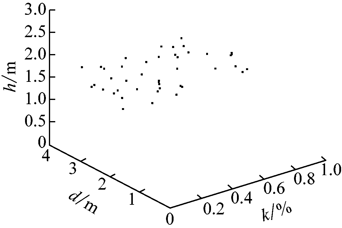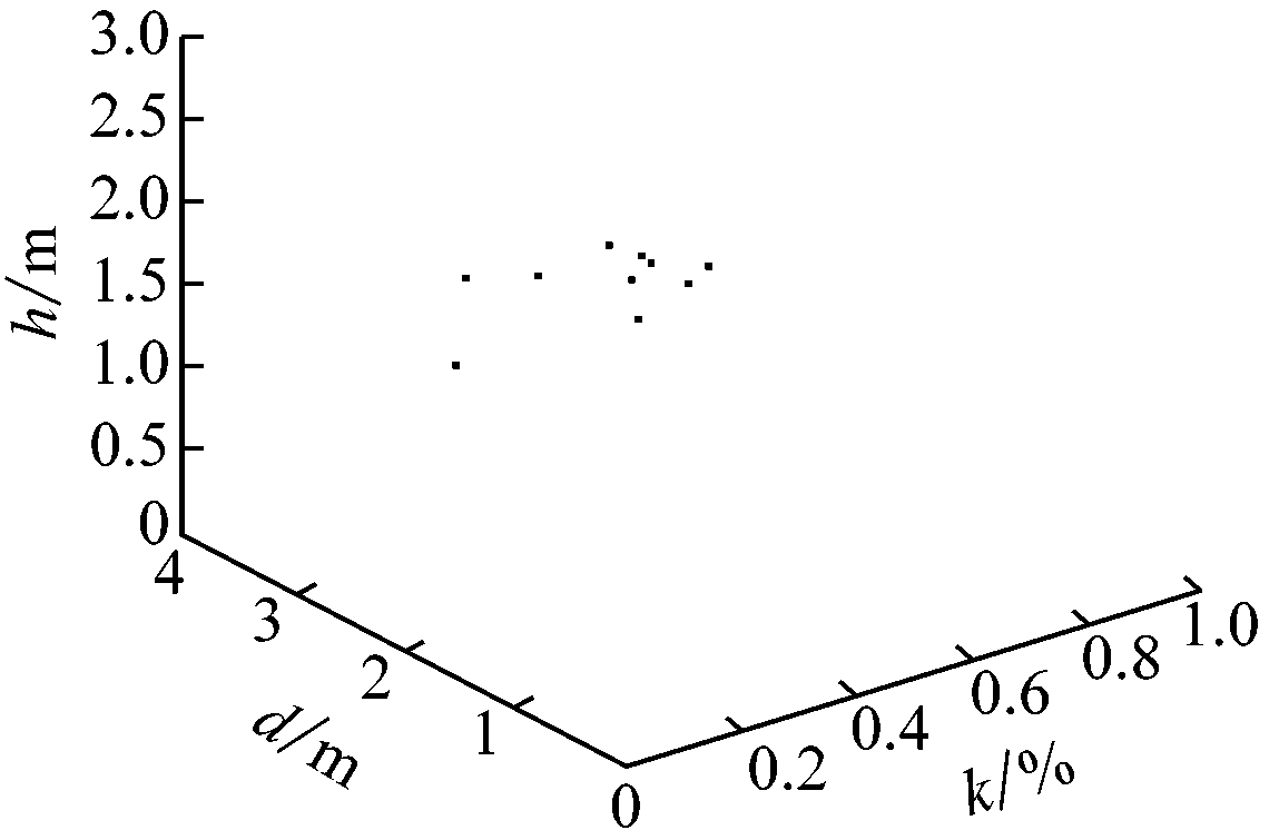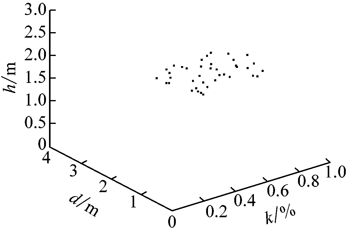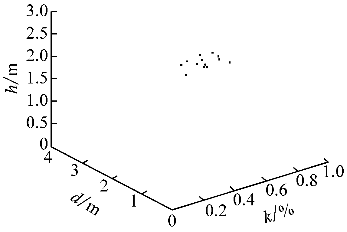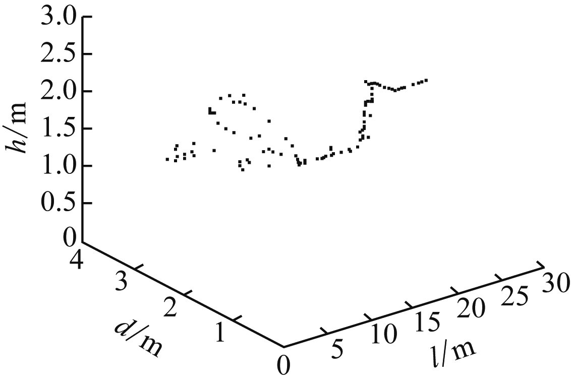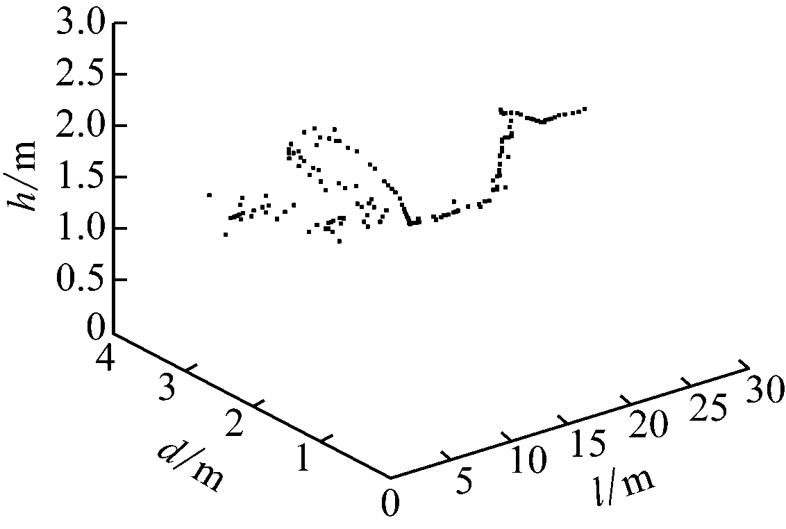 由图5可看出,避障时的采集点位置随着飞行机器人的轨迹变化,在没有障碍物的起始检测段和飞出监测段,甲烷浓度采集点位置基本保持在纵向和横向的中心位置;每个截面中均有较多采集点,表明飞行机器人采集的原始信息中含有较多冗余信息。