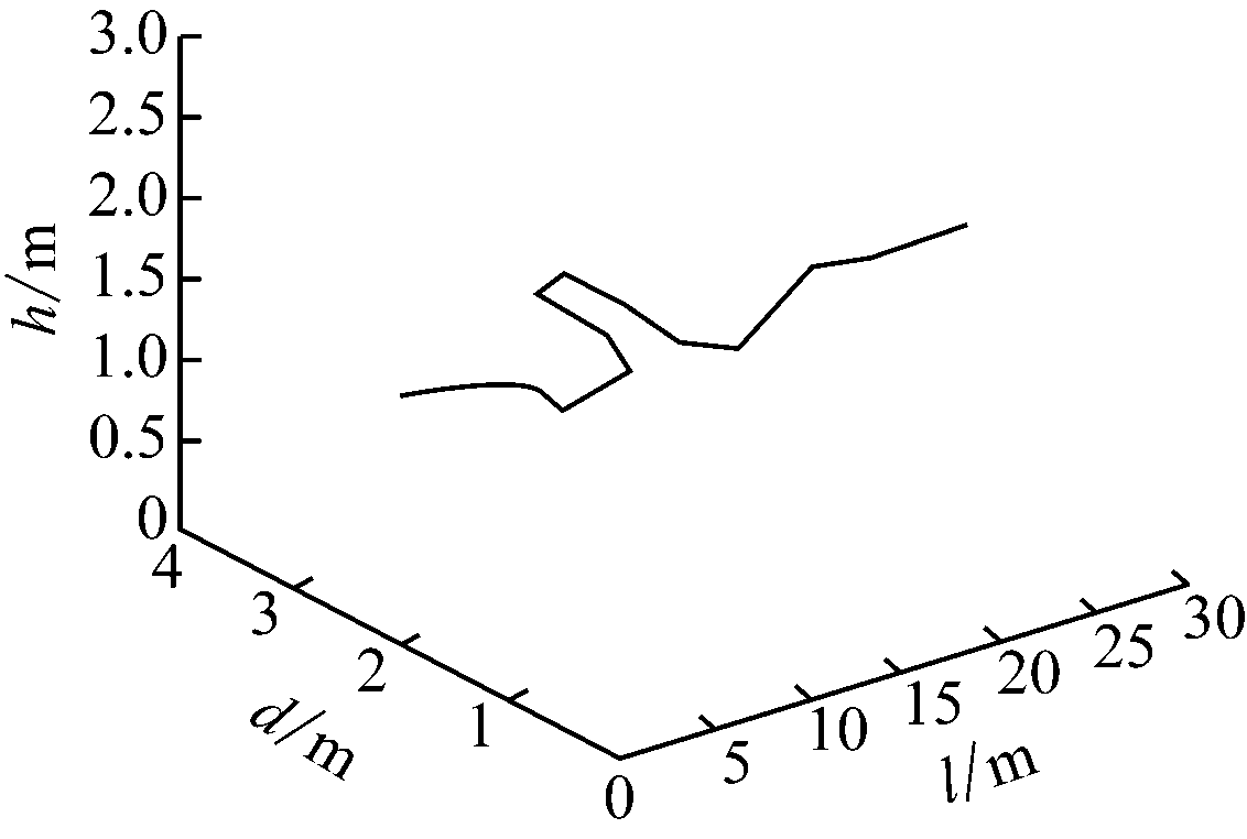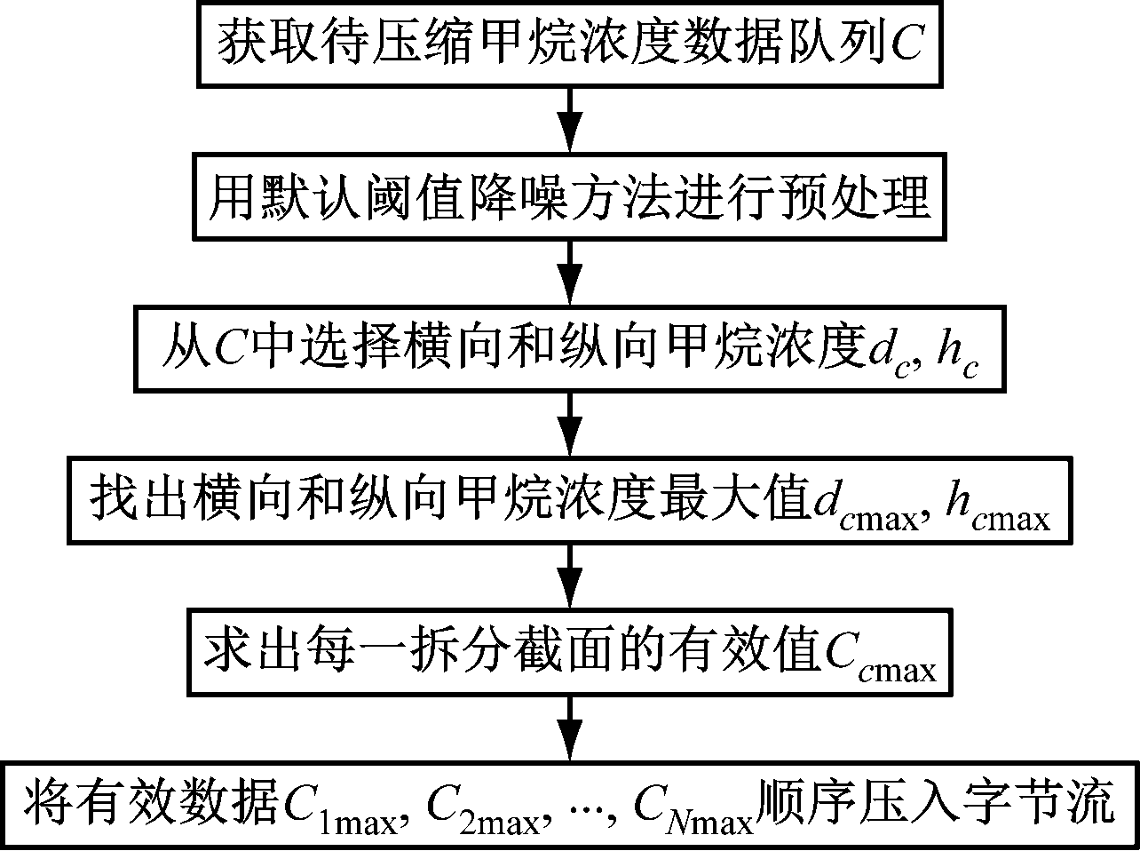 以甲烷监测为例,假设煤矿四旋翼飞行机器人在巷道中对甲烷气体进行监测,其在巷道深度(l)、高度(h)、宽度(d)方向均有监测数据。本文压缩数据的原则如下:① 在沿巷道方向每一拆分截面上选择甲烷浓度最大值。② 因每一拆分截面上,在高度方向(纵向)、宽度方向(横向)都有大量甲烷浓度数值,所以,在每一截面的横、纵方向分别选取最大值。③ 在每一截面上,选取纵向最大值、横向最大值中较大的值作为当前深度处的有效值。