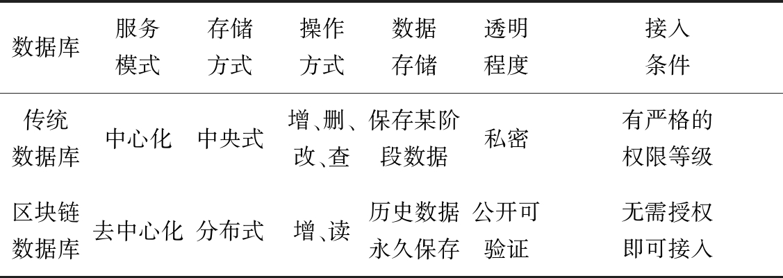 Table 1 Characteristics comparison of traditional database and blockchain database