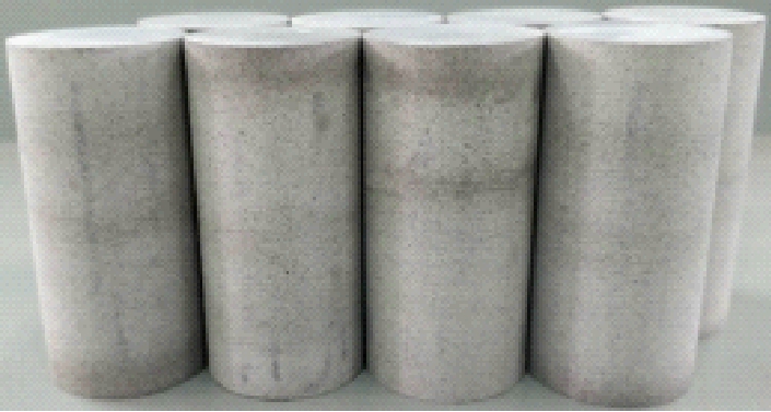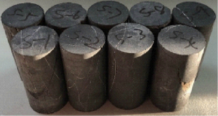 实验所用石灰岩取自陕北马家沟组,页岩取自四川长宁马龙溪组。按照国际岩石力学学会标准,进行取芯、切割,打磨制成φ25 mm×50 mm标准试样(图2),试样端面的平整度控制在±0.02 mm内。