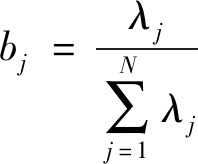 (4) 选取主成分。计算特征值λj的贡献率bj和累计贡献率cp: