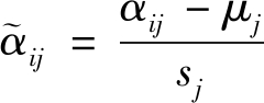 式中:αij为第i个数据的第j个指标,i=1,2,…,n,n为数据组的个数,j=1,2,…,N,N为数据的指标数量;μj为样本均值,