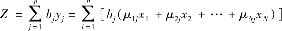 yi=μ1ix1+μ2ix2+μjixj+…+μNixN
