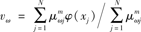 式中:vω为高维特征空间中第ω类的聚类中心,ω=1,2,…,k;μωj为第j个样本xj对第ω类的隶属度,μωj∈[0,1]。