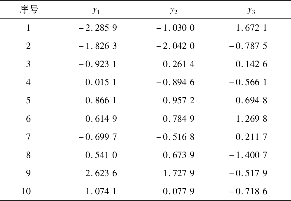 序号y1y2y31-2.2859-1.03001.67212-1.8263-2.0420-0.78753-0.92310.26140.142640.0151-0.8946-0.566150.86610.95720.694860.61490.78491.26987-0.6997-0.51680.211780.54100.6739-1.400792.62361.7279-0.5179101.07410.0779-0.7186