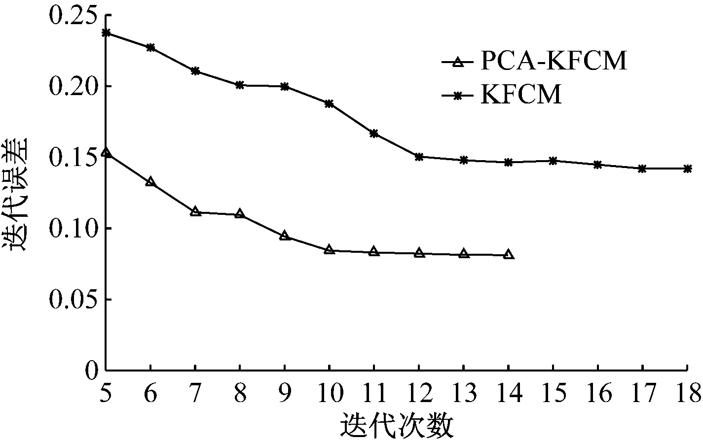 (2) 与KFCM算法相比,PCA-KFCM算法的收敛速度明显快于KFCM算法,识别精度提高了23.2%,且大幅降低了计算量。