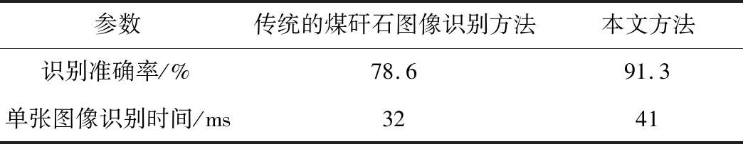 参数传统的煤矸石图像识别方法本文方法识别准确率/%78.691.3单张图像识别时间/ms3241