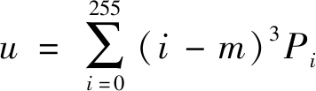 三阶矩反映图像直方图分布的不对称程度,其表达式为