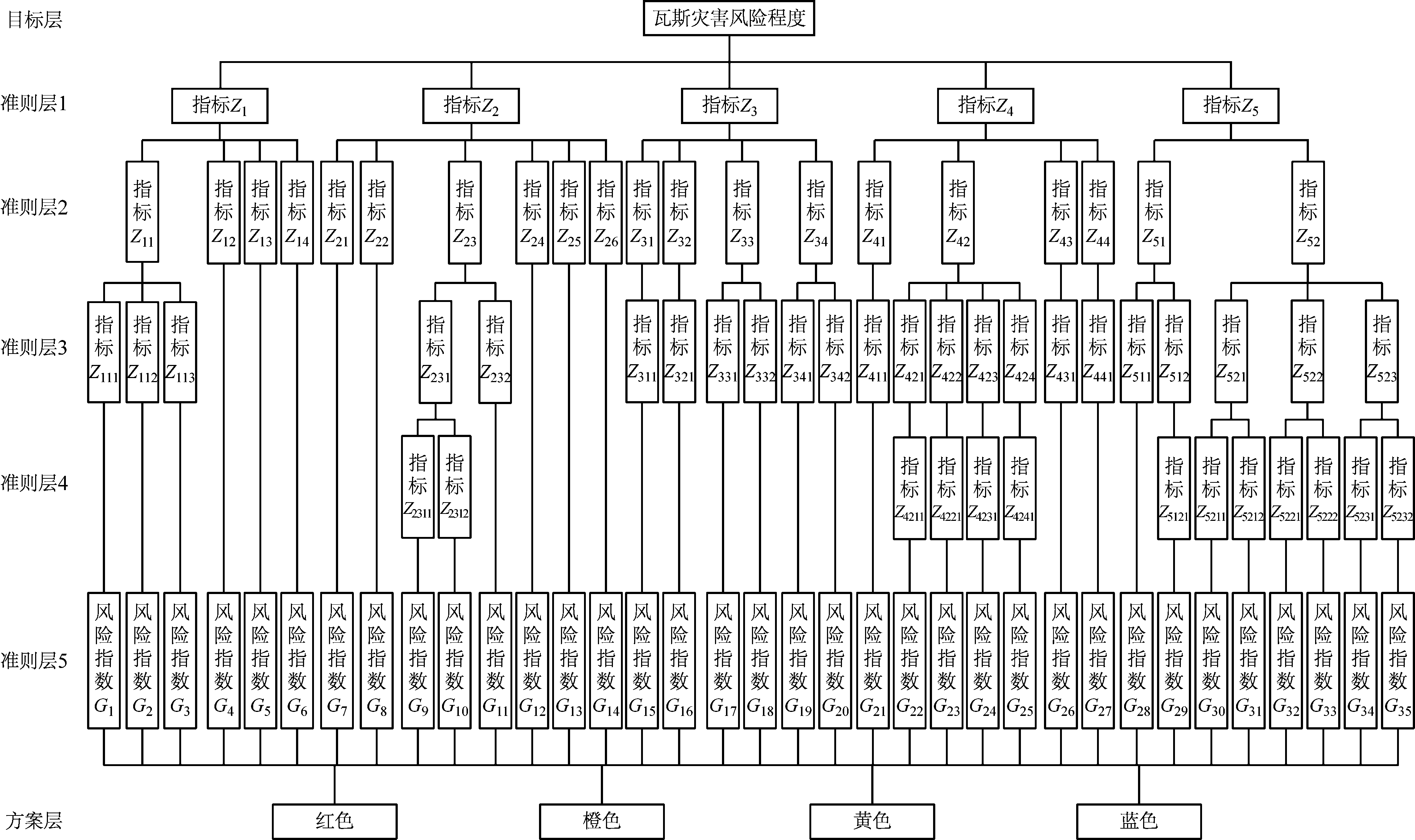 目标层为瓦斯灾害风险程度,即最终需要确定的预警等级。