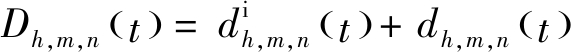 设矿井无标签目标定位系统中存在N个接收天线,空间中存在频率为fh和f2h的信号,通过带宽足够大的滤波器滤除fh及其附近频率的自干扰和直接路径干扰信号,只接收频率为f2h的信号。对于第m个谐波标签发射信号sm(t),第n个接收天线接收信号Dh,m,n(t)可分为两部分:谐波标签到接收天线的直接路径信号及地面和墙壁到接收天线的多径信号