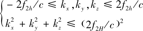 可见傅里叶域的采样被限制在一个直径为4f2h/c的球内,谐波标签发射信号的最大传输频率为f2H。因此在x,y,z轴方向上的最佳分辨率为c/(4f2H)。