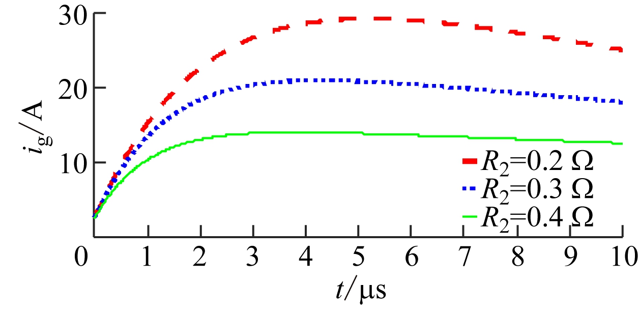 图6 不同短路回路电阻对EC电路短路火花放电的影响曲线