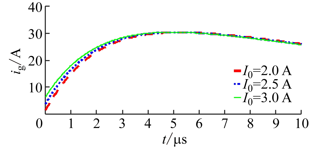 图7 不同负载电流对EC电路短路火花放电的影响曲线