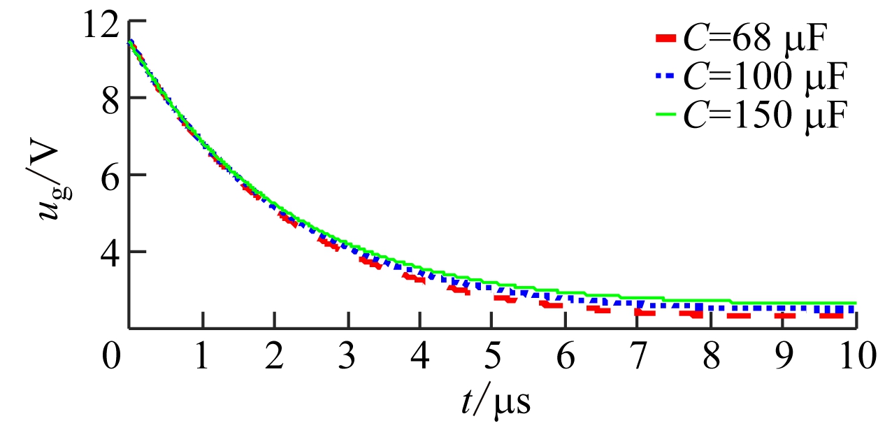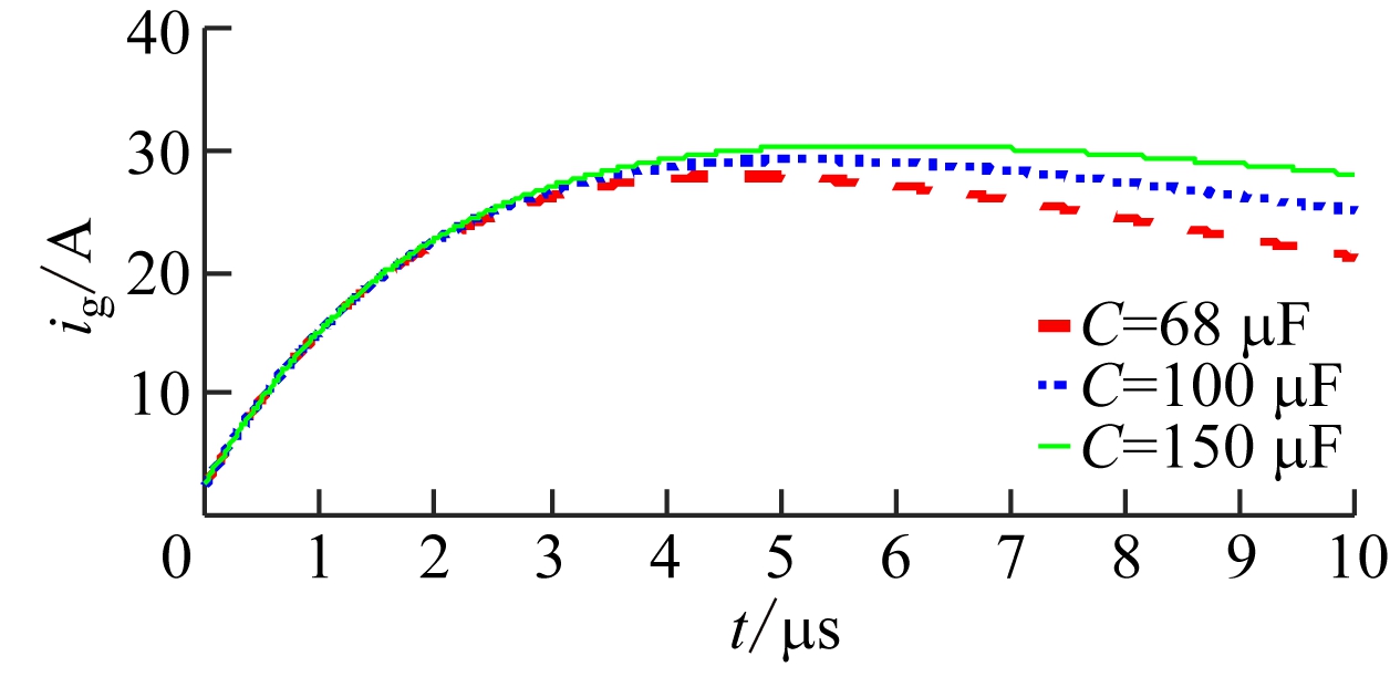 图5 不同滤波电容对EC电路短路火花放电的影响曲线