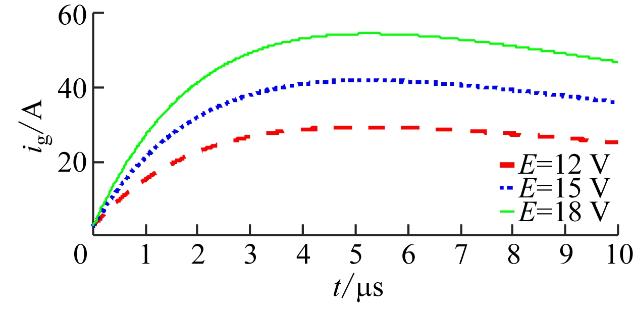 (a) 不同电源电势对EC电路短路火花放电电流的影响曲线