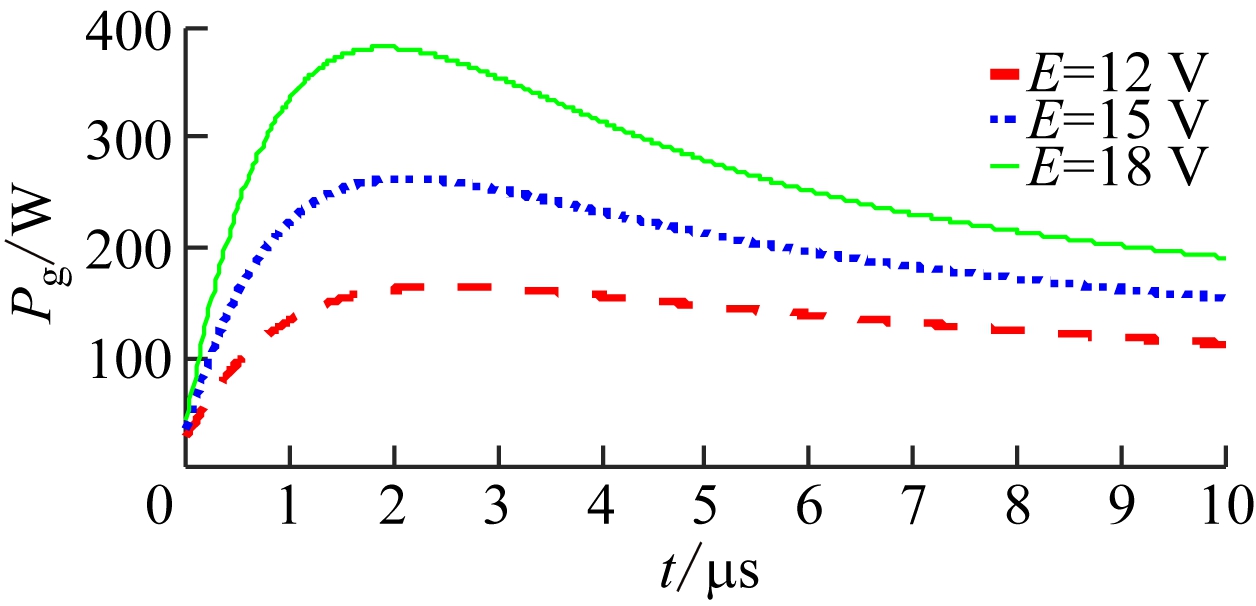 (c) 不同电源电势对EC电路短路火花放电功率的影响曲线