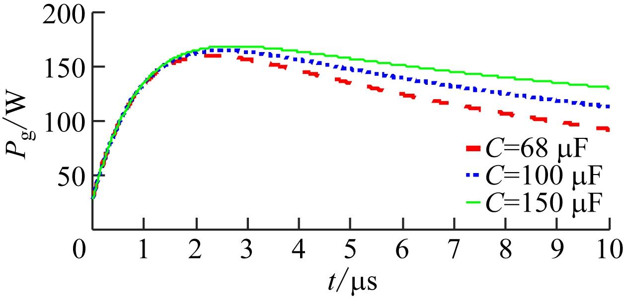 (c) 不同滤波电容对EC电路短路火花放电功率的影响曲线