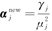 为超参数α的更新值;变量γj度量了由数据求得的对应权值参数wj的效果,γj=1-αjQj,j,Qj,j为Q中第j行第j列的元素;