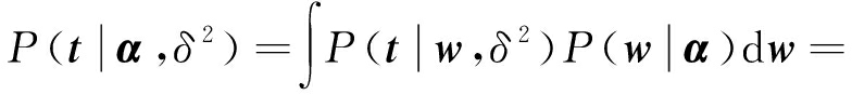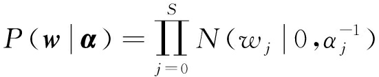RVM回归通过引入超参数并假设权值向量为零均值的高斯先验分布确保模型的稀疏性[11-12],超参数可采用最大边缘似然方法估计[13]。设模型的输入为