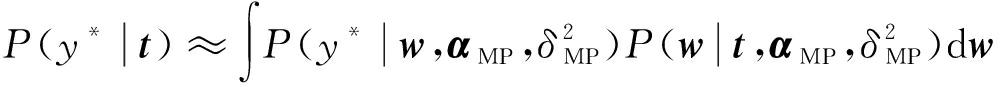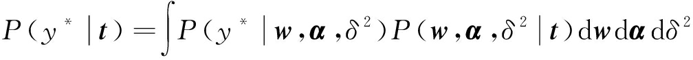 式中:μ为w的后验分布均值,μ=δ-2Q φTt;φ(x*)为测试样本组成的核矩阵;Q为w的后验分布协方差Q=(δ-2φTφ+A)-1。