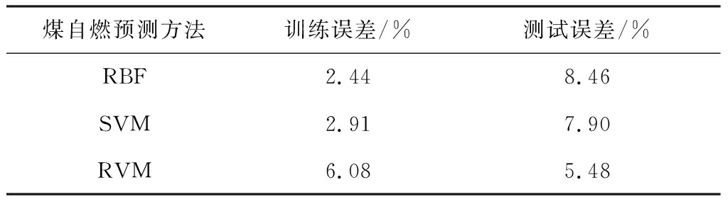 煤自燃预测方法训练误差/%测试误差/%RBF2.448.46SVM2.917.90RVM6.085.48