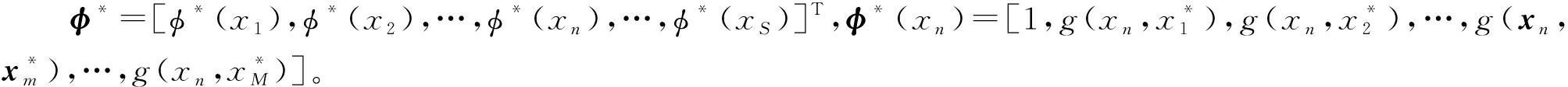 式中φ为核函数k(xn,xi)组成的核矩阵,即φ=[φ(x1),φ(x2),…,φ(xn),…,φ(xS)]T,φ(xn)=[1,k(xn,x1),k(xn,x2),…,k(xn,xi),…,k(xn,xS)]。