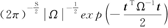 式中Ω为t的条件分布协方差,Ω=δ2I+φA-1φT,I为单位阵,对角阵A=diag(α0,α1,…,αj,…,αS)。