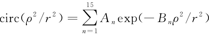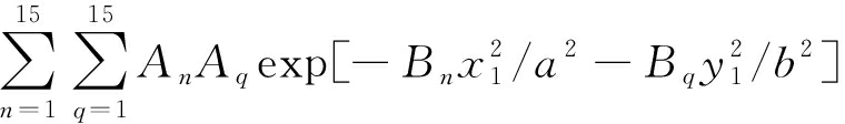 J. Wen等[14]在近轴近似的理论基础上,基于赫姆霍兹波动方程提出了多元高斯声束模型的概念,即采用多个高斯声束叠加的方法近似一个圆盘源辐射声场,并且仅用10个Wen and Breazeale系数就可获得较好的近似效果。文献[15]将Wen and Breazeale 系数增加到15个,进一步提高了模拟结果的准确性。