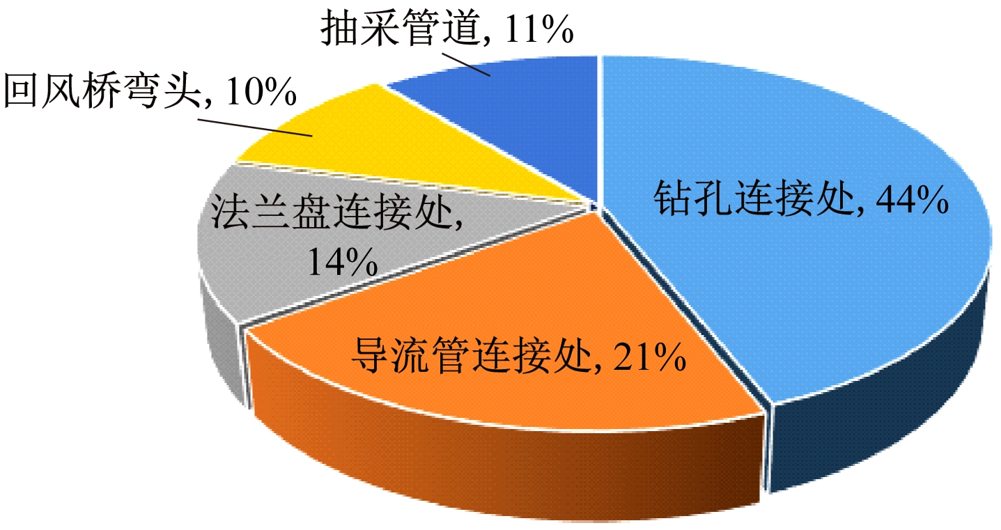 Fig.2 Connection mode of gas drainage pipeline and main gas leakage points