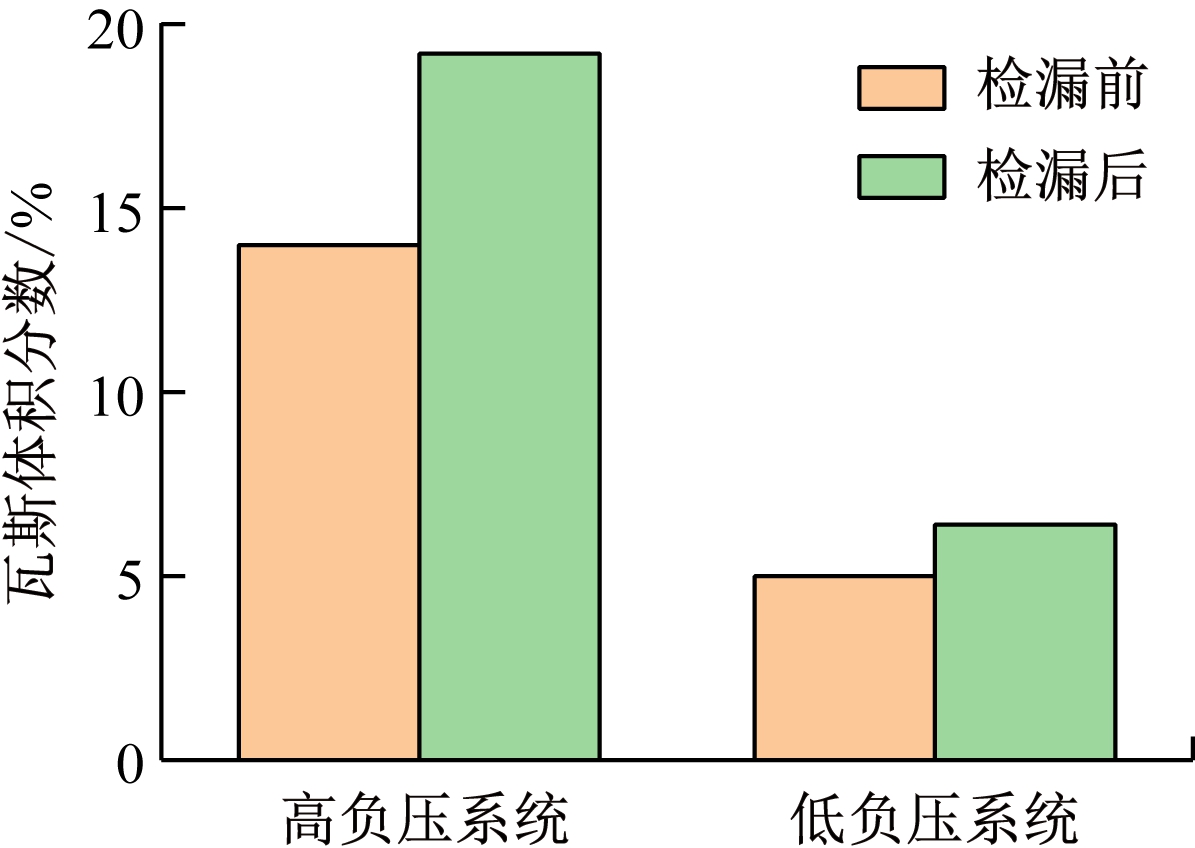 Fig.7 Comparison of gas drainage volume fraction before and after leakage detection