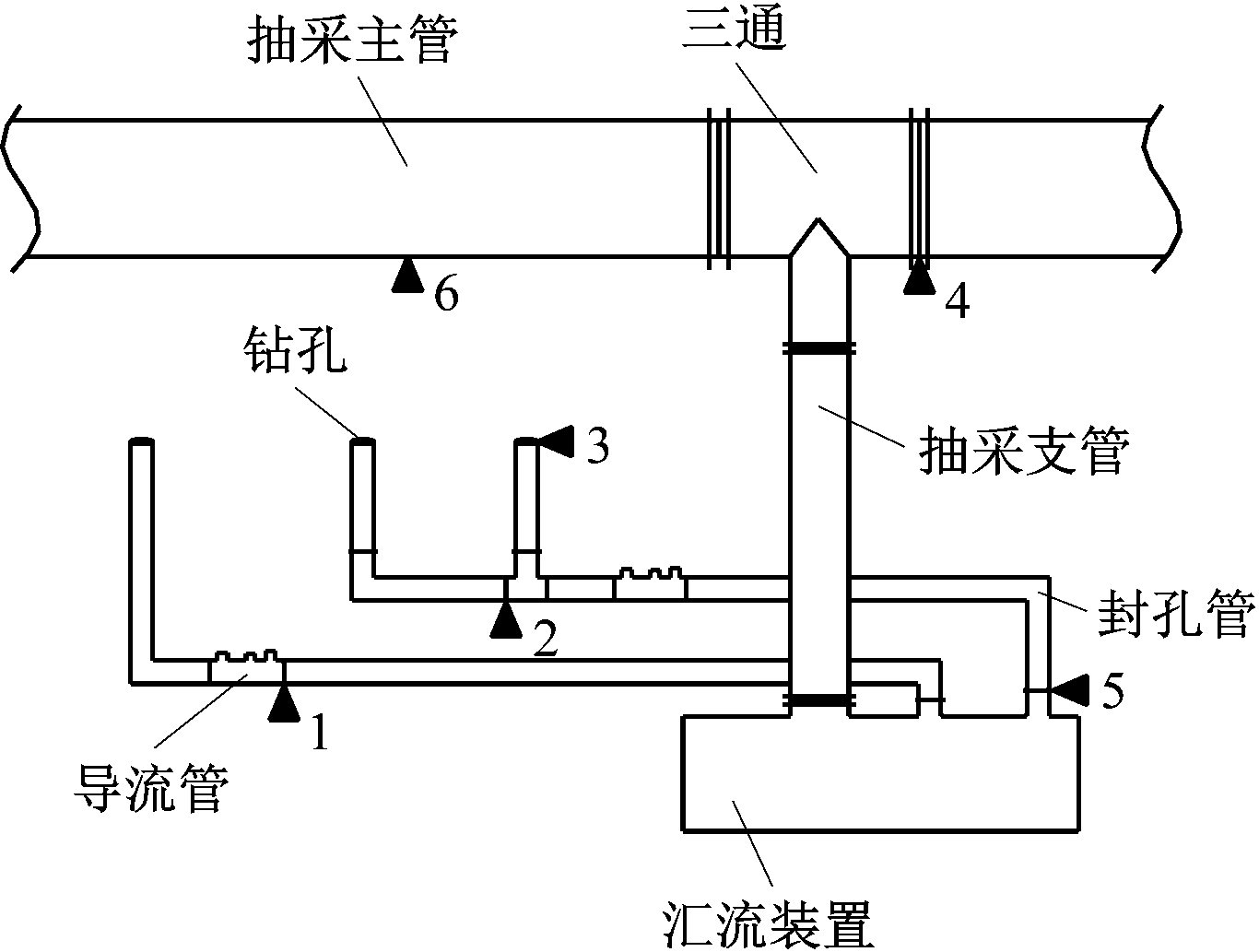 5-封孔管与汇流装置连接处;6-管道破损处。