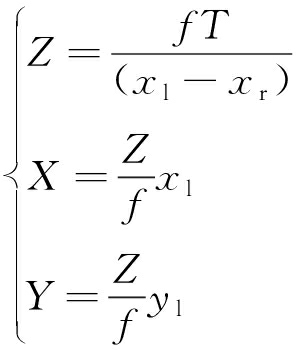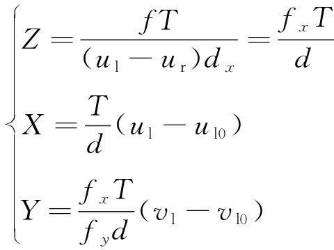 式中:fx,fy为相机在x方向和y方向上的焦距;d为视差,d=ul-ur。