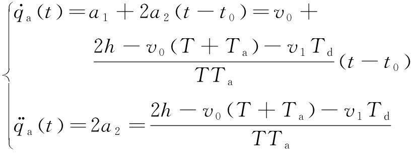 令Ta=tg-t0,Td=t1-tg,经计算可得,当t∈[t0,tg]时,抛物线加速段的角速度及角加速度分别为