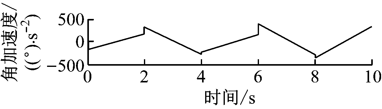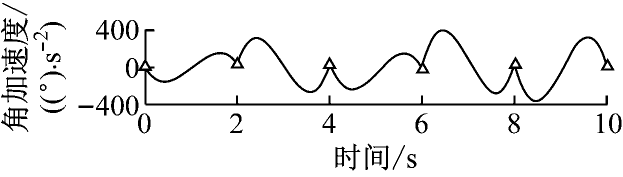 由图7可知,采用三次多项式插值函数进行轨迹规划时,各关节角度及角速度曲线过渡平滑,但无法对起始点及终止点的角加速度进行约束,当规划的轨迹中有多个中间路径点时,关节角加速度不连续,会对电动机产生冲击。