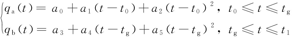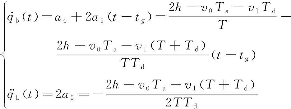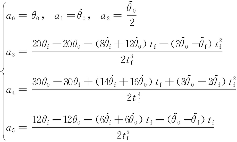 式中:qa(t)和qb(t)分别为加速段及减速段的轨迹,t为时间;ai为多项式系数,i∈[0,5]。