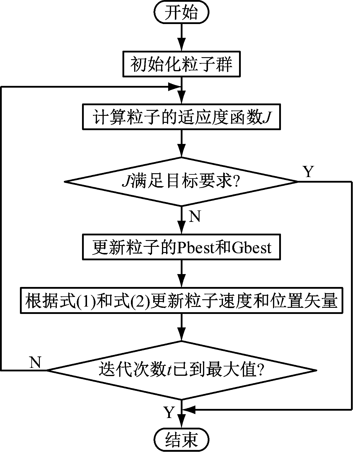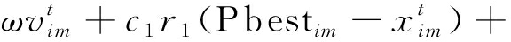 PSO算法中的粒子无质量且包含速度和位置2种属性。以粒子群中第i个粒子为例,其位置矢量表示为xi=(xi1,xi2,…,xim), 速度矢量表示为vi=(vi1,vi2,…,vim),其中xim和vim表示第i个粒子第m维位置和速度。